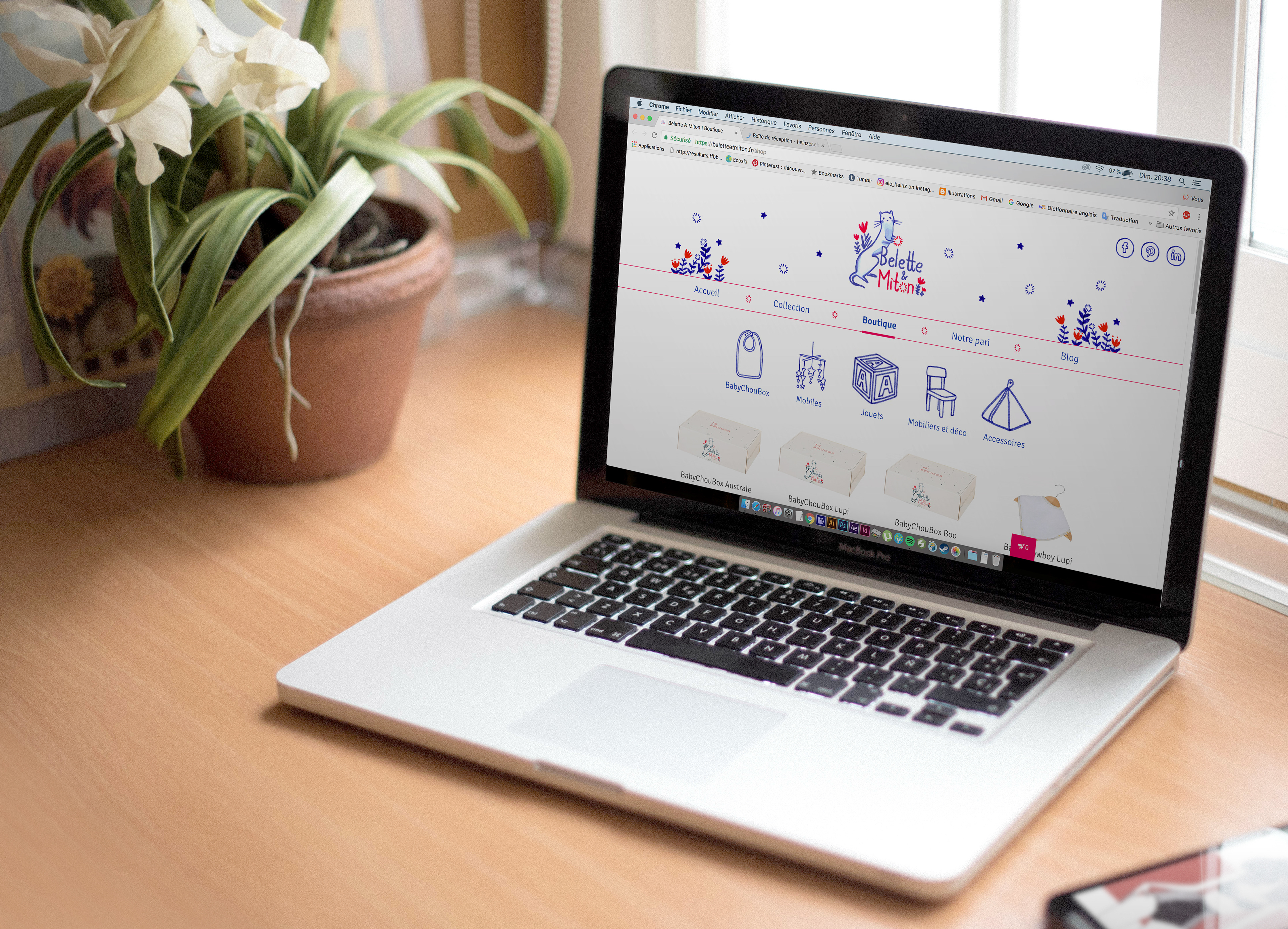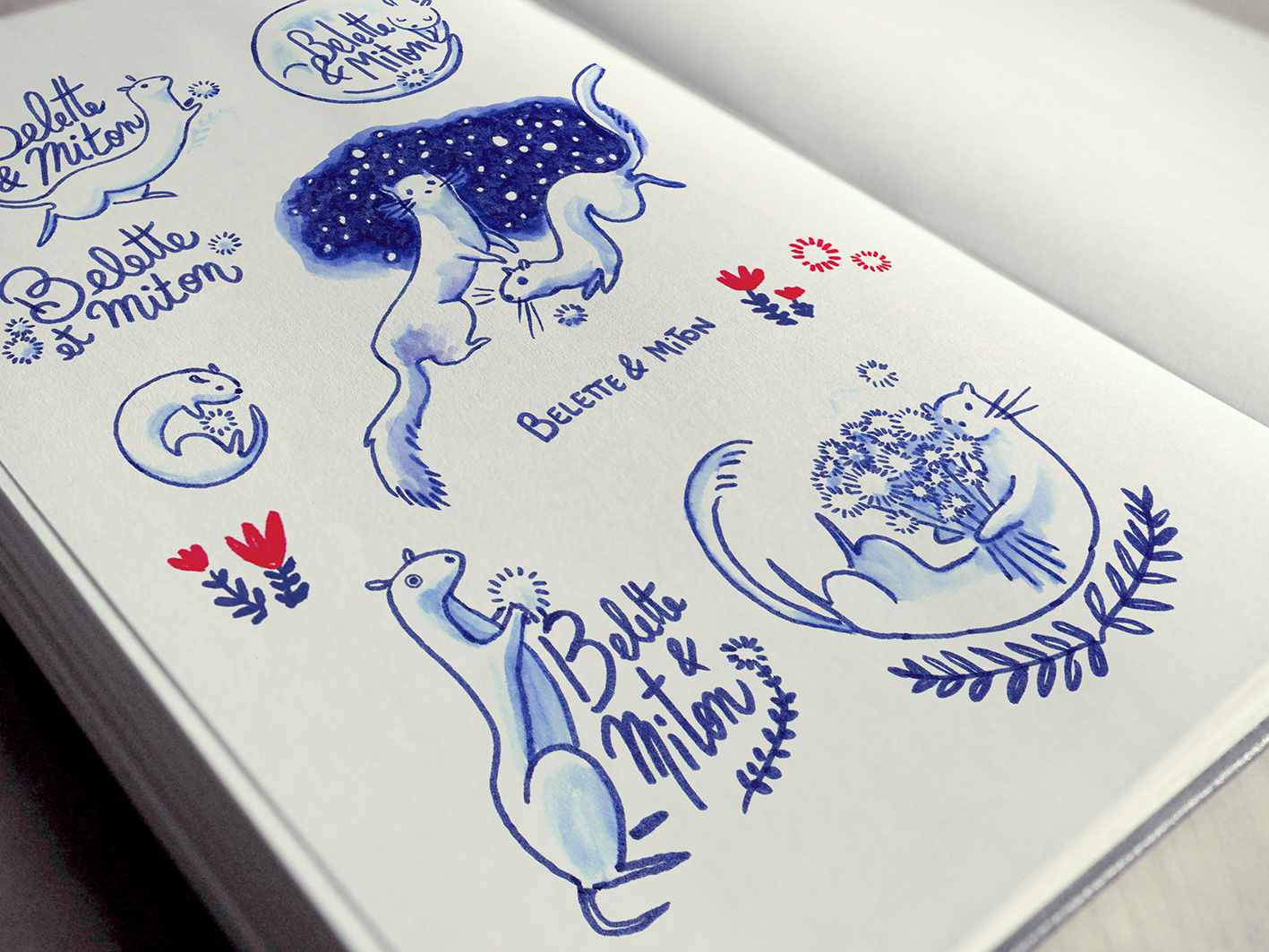 Belette et Miton, jeune marque française pour enfant, m'a confié la création de leur identité visuelle. J'ai également créé pour eux, un motif sur-mesure pour tout une gamme de produits.
