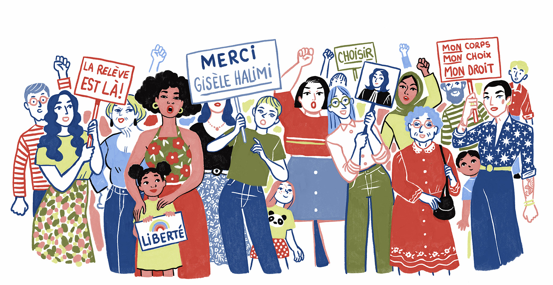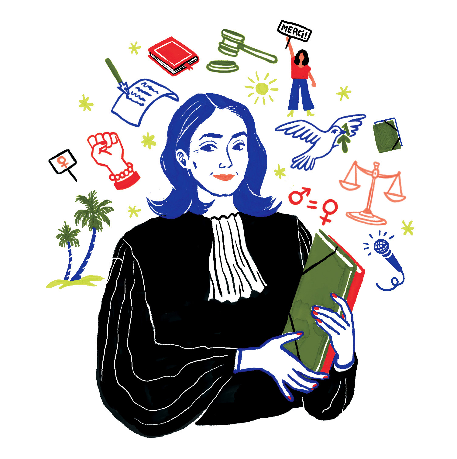 Illustrations pour le livre "Les grandes Vies" sur Gisèle Halimi aux édition Gallimard Jeunesse. Écrit par Jessie Magana.
